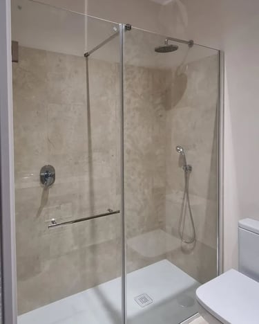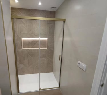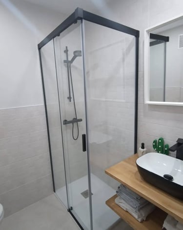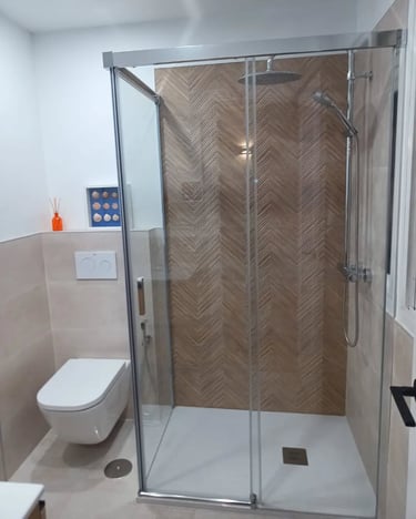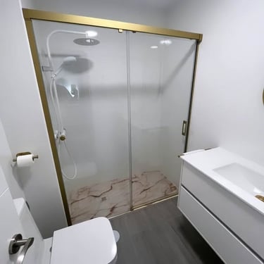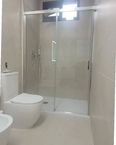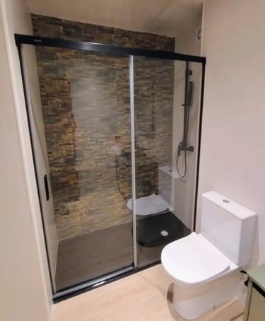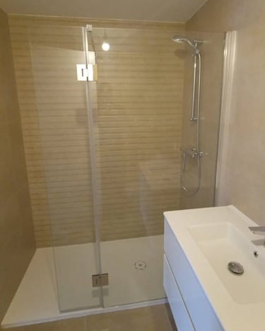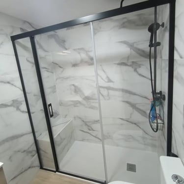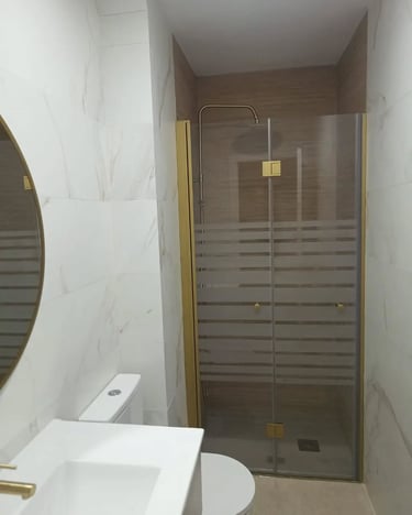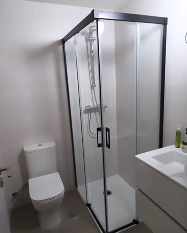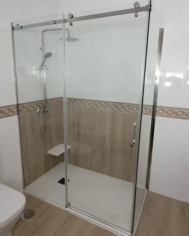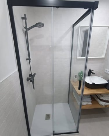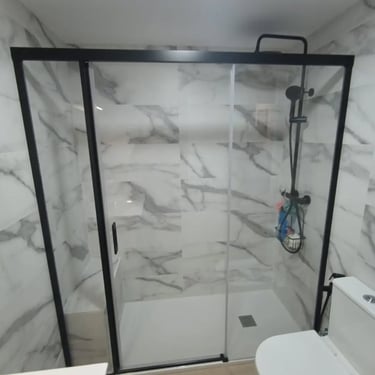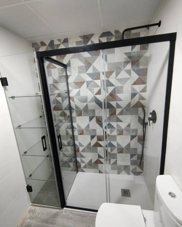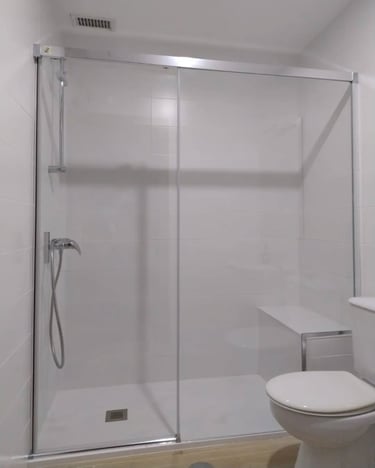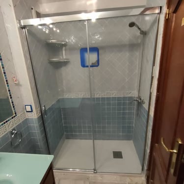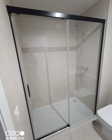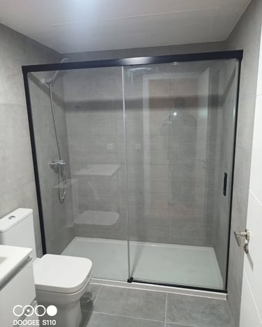 Ejemplos reales de mamparas correderas, abatibles, plegables y fijos que hemos fabricado e instalado para transformar baños en espacios más modernos y funcionales.