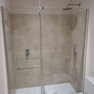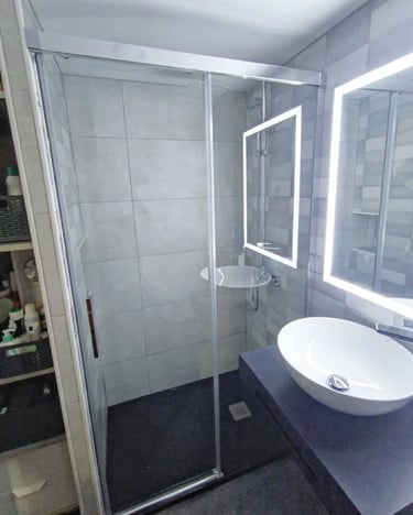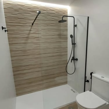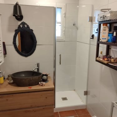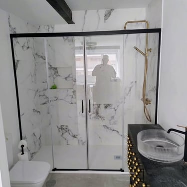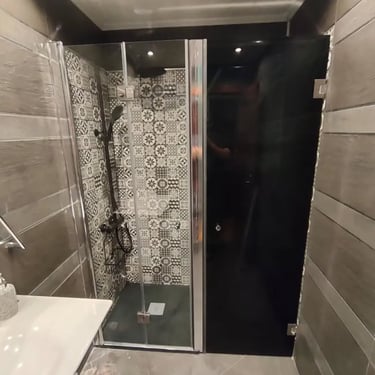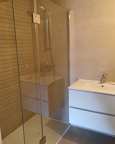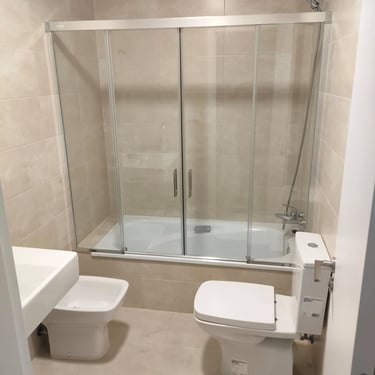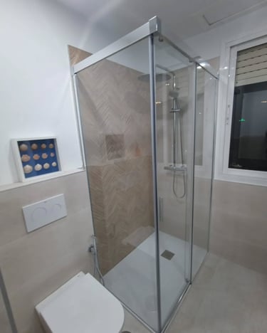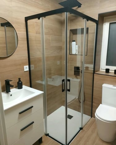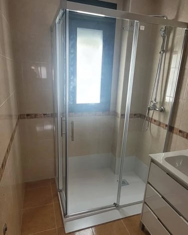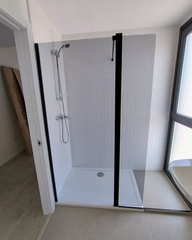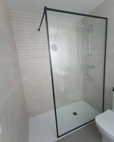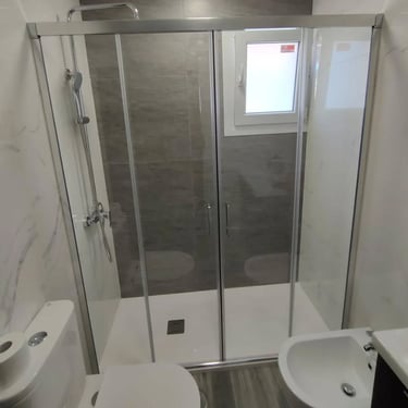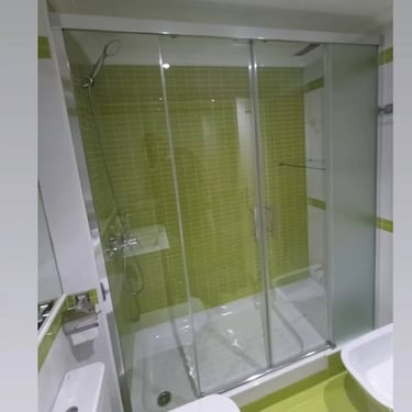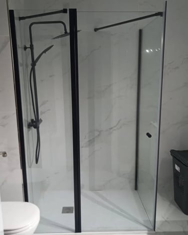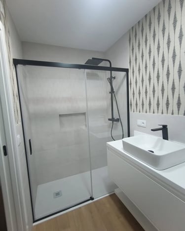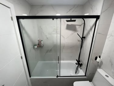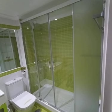 Ejemplos reales de mamparas correderas, abatibles, plegables y fijos que hemos fabricado e instalado para transformar baños en espacios más modernos y funcionales.